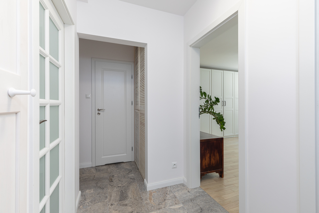 Mieszkanie po generalnym remoncie w 2022 roku. Robione dla siebie, z bardzo dobrej jakości materiałów. Na podłodze w salonie i dwóch pokojach nowy parkiet dębowy. W holu, łazience i kuchni wysokiej jakości trawertyn. W lokalu zostały wymienione instalacje wod-kan i grzewcze. Dodatkowo podczas remontu wymieniona została instalacja elektryczna. Drzwi wejściowe "pancerne" ze stali. Mieszkanie jest widne, na wysokim parterze.