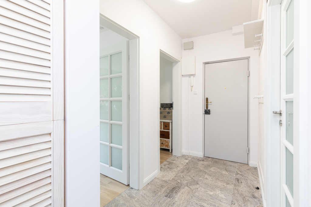Mieszkanie po generalnym remoncie w 2022 roku. Robione dla siebie, z bardzo dobrej jakości materiałów. Na podłodze w salonie i dwóch pokojach nowy parkiet dębowy. W holu, łazience i kuchni wysokiej jakości trawertyn. W lokalu zostały wymienione instalacje wod-kan i grzewcze. Dodatkowo podczas remontu wymieniona została instalacja elektryczna. Drzwi wejściowe "pancerne" ze stali. Mieszkanie jest widne, na wysokim parterze.
