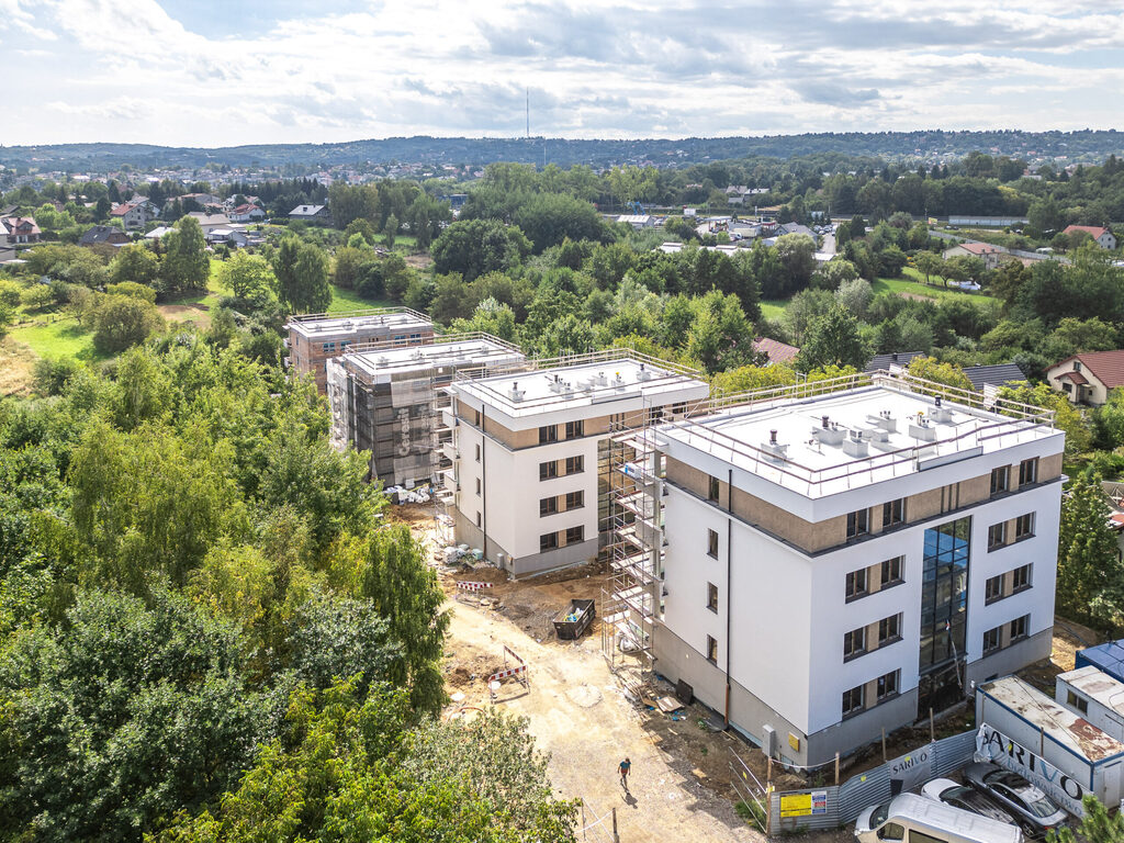 • Inwestycja powstaje w unikalnej lokalizacji na obrzeżach Krakowa, oferując połączenie nowoczesnego standardu mieszkań z bliskością natury i kameralnym charakterem zabudowy.