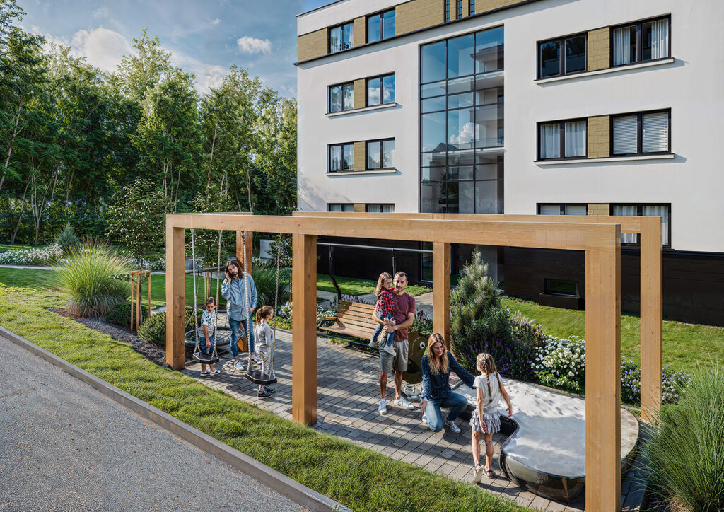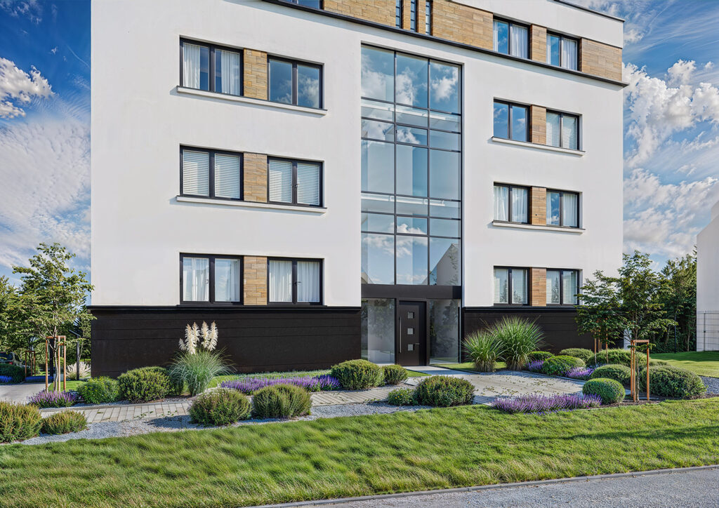 • Każdy budynek obejmuje zaledwie 10 mieszkań, co zapewnia spokojny, kameralny charakter zabudowy.