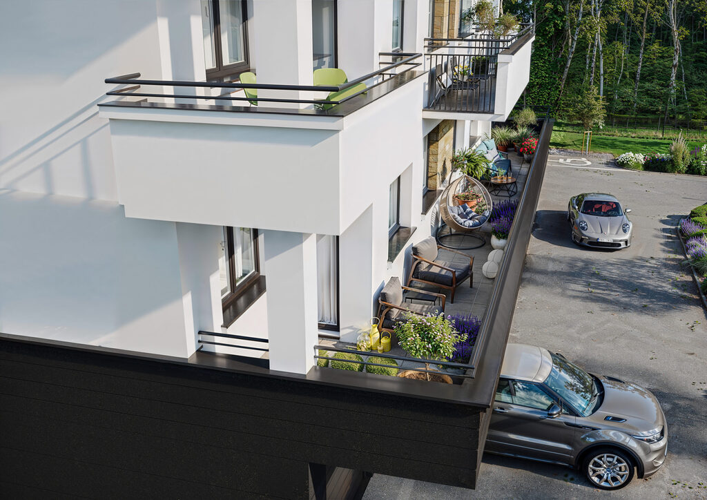 • Budynki wyposażone są w windy, a każde mieszkanie posiada przestronny balkon lub taras.