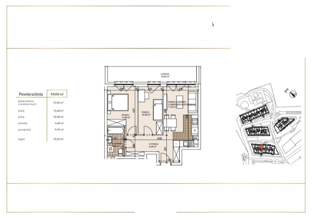 - loggia z wyjsciem z każdego z trzech pokoi (12,56 m2)