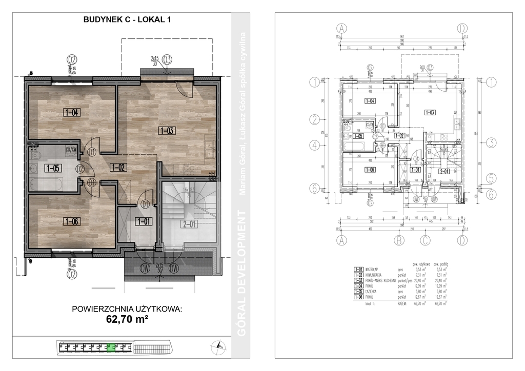 62,7 m² - 785 000 zł, natomiast dwupoziomowe mieszkania o powierzchni