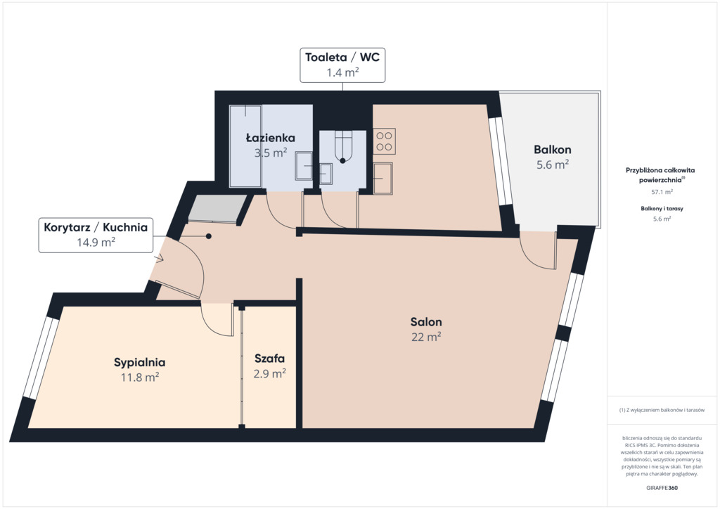 Loggi wychodzącej na południową stronę – 5,6 m2.