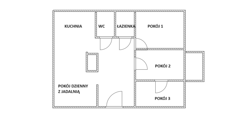 Mieszkanie składa się z:- pokoju dziennego/ jadalni połączonej z kuchnią - około 20 m2