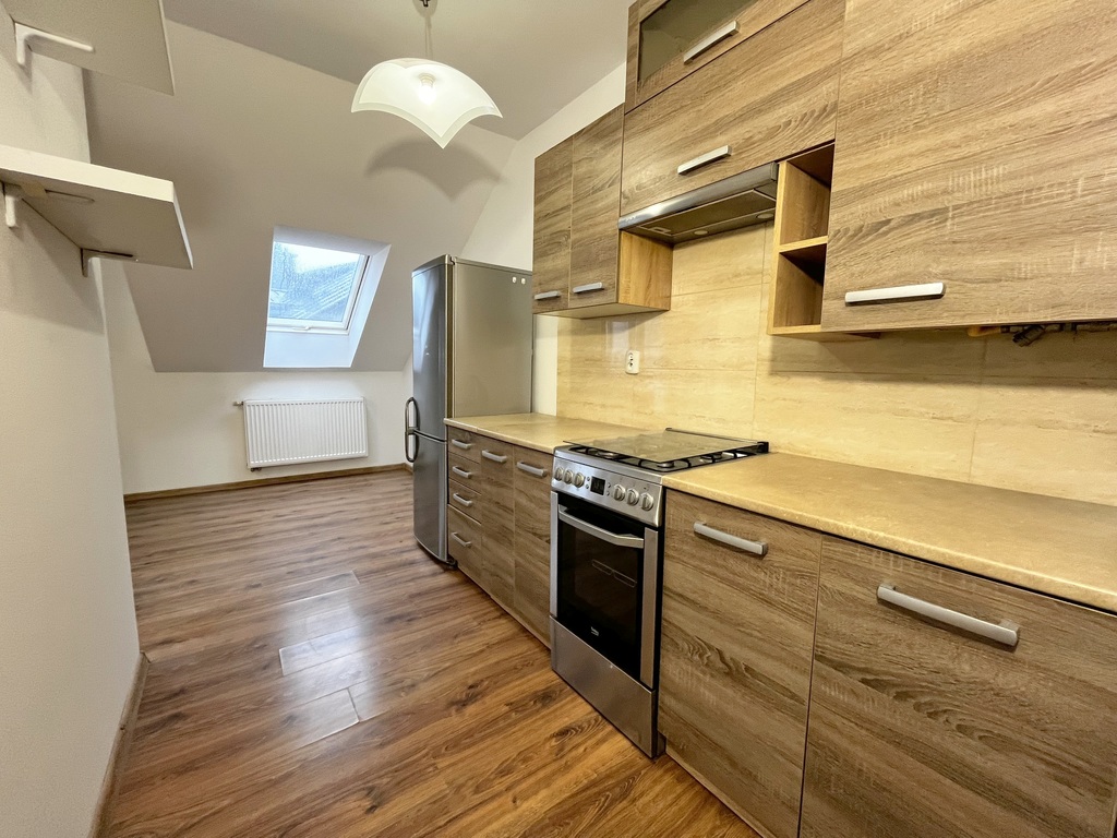 MIESZKANIE: Nieruchomość składa się z 3 pokoi, widnej, ciekawie zabudowanej i pół-otwartej kuchni z wydzielonym miejscem na jadalnię, przestronnej łazienki z wanną, wc i dodatkowego (nie liczonego do metrażu mieszkania) pomieszczenia na poddaszu. W salonie znajduje się wyjście na balkon.