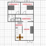 Powierzchnia całkowita wynosi ok. 70 m2 z czego 58,4 m2 to powierzchnia użytkowa.