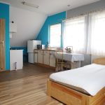 - Ilość pomieszczeń: salon- sypialnia, otwarta kuchnia, łazienka