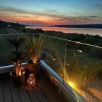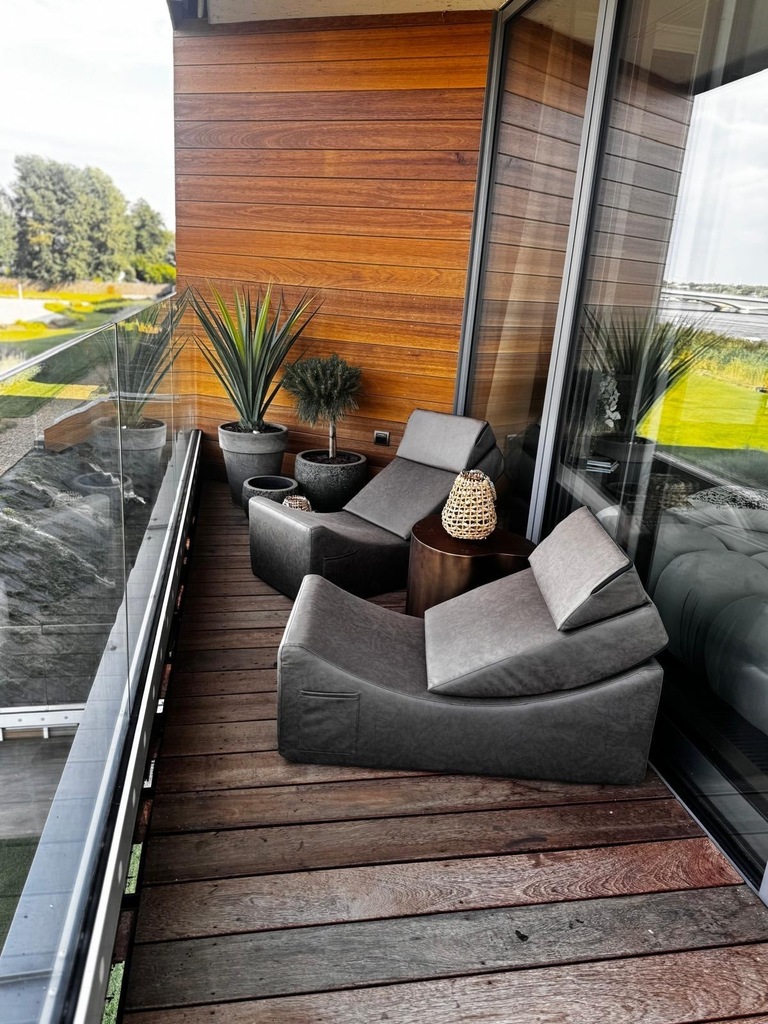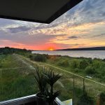 Salon oraz taras tworzą idealną przestrzeń do relaksu z widokiem na wodę i zachody słońca.