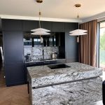 - Otwarta kuchnia (10,53 m²) z wyspą i kamiennym blatem