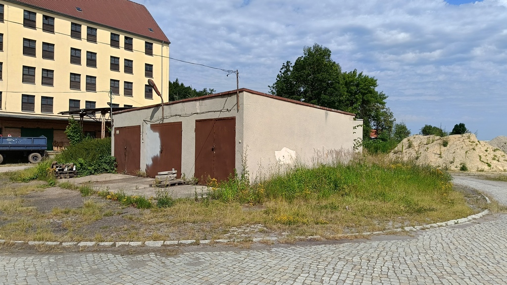 - Do nieruchomości poza wyżej wymienionym budynkiem przynależą  murowane garaże usytuowane na odrębnej działce o powierzchni 387 m2.
