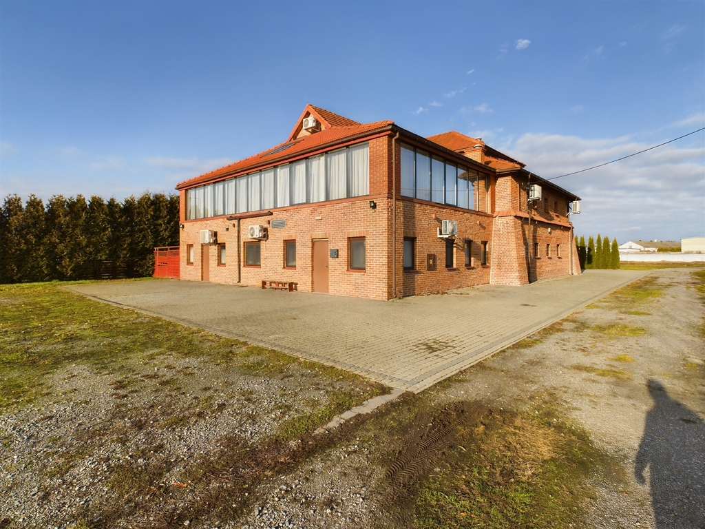 Budynek znajduje się na działce o powierzchni 16a, w pobliżu drogi numer 77 w miejscowości Dębno