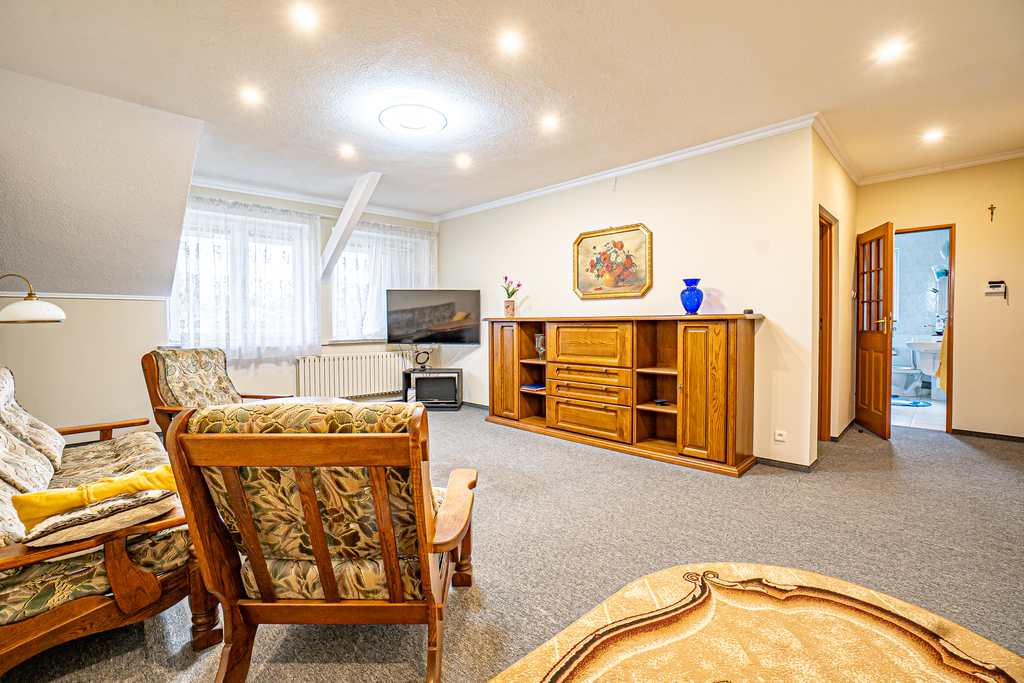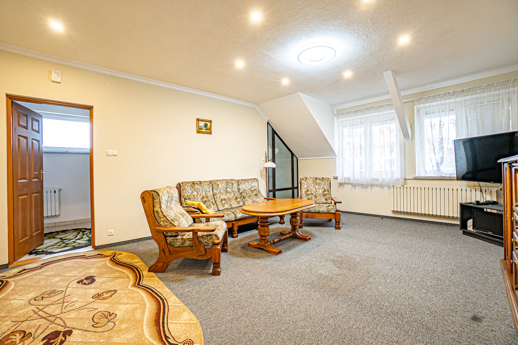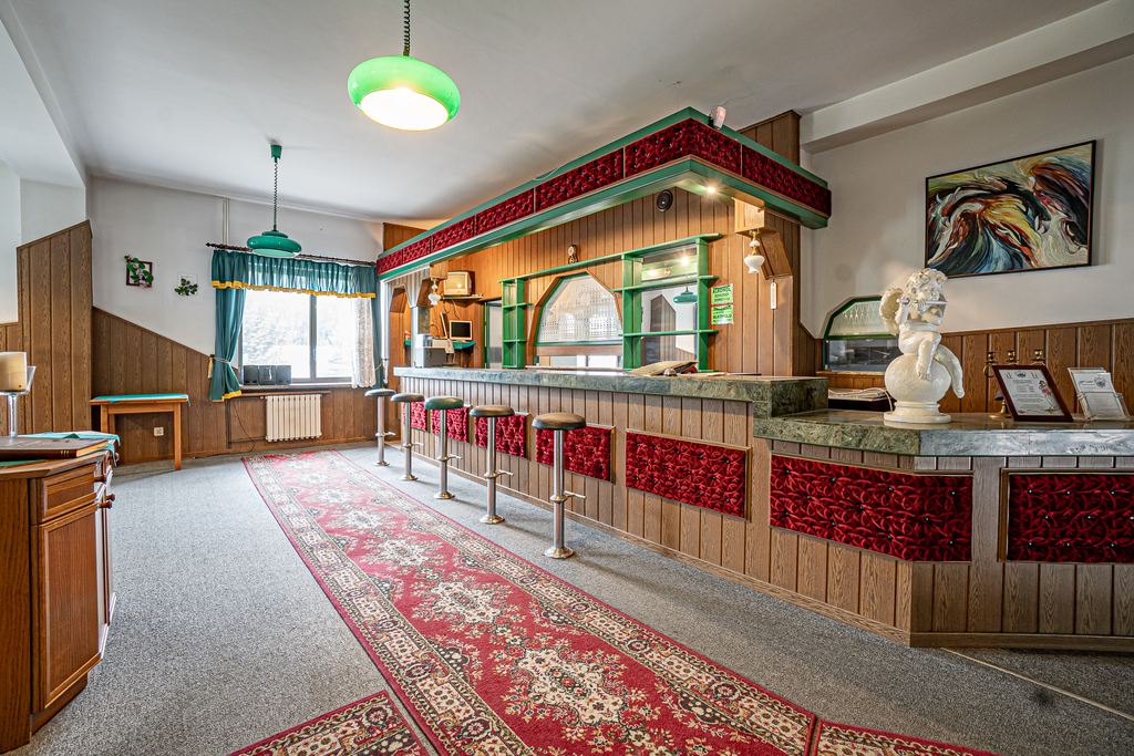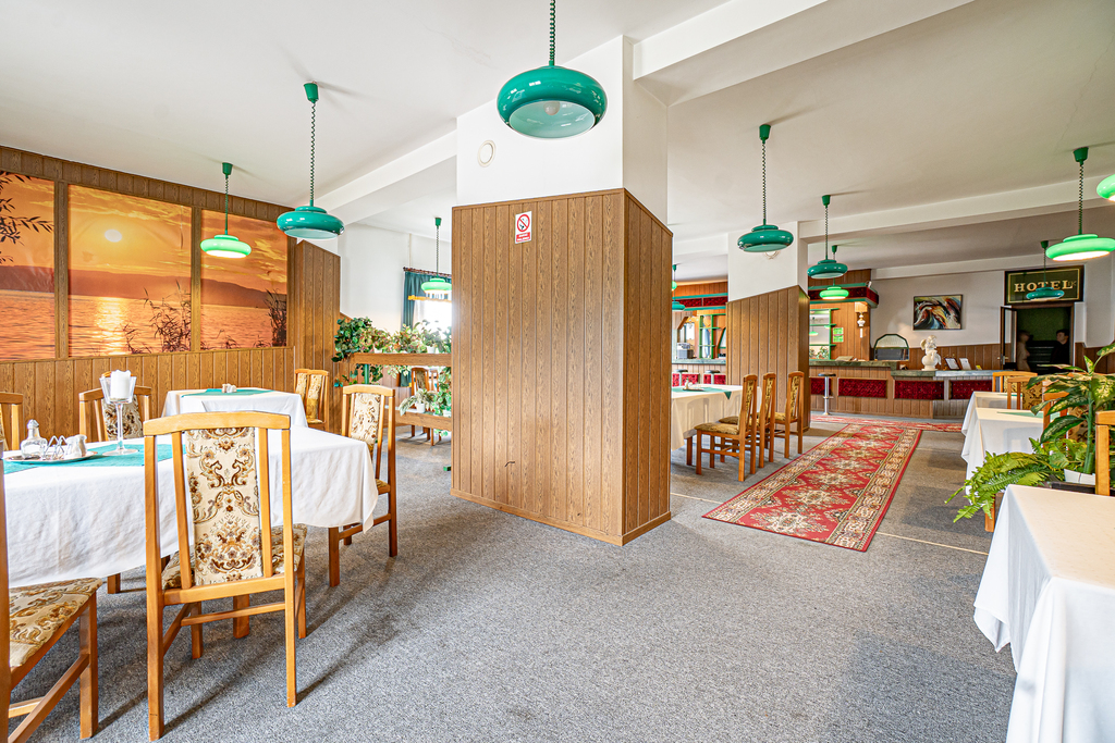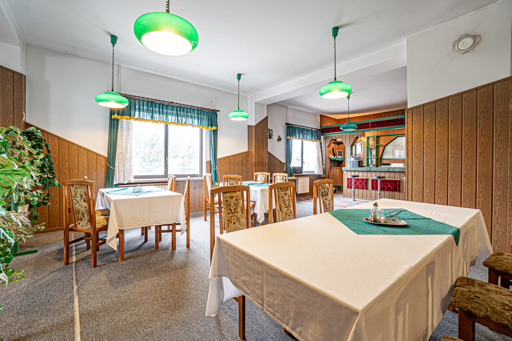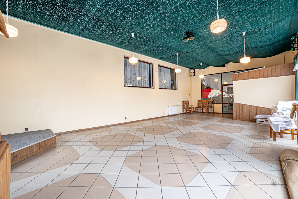 - Grunt obecnie zabudowany obiektem hotelowo restauracyjnym o powierzchni użytkowej 817,3 m2 składającym się z sali restauracyjnej, kuchni z zapleczem, 10 pokoi z łazienkami, warsztatu. Budynek mieszkalny składa się z pomieszczeń mieszkalnych hal weselno-restauracyjnych z zapleczem biurowym i socjalnym o łącznej powierzchni użytkowej 1981 m2.