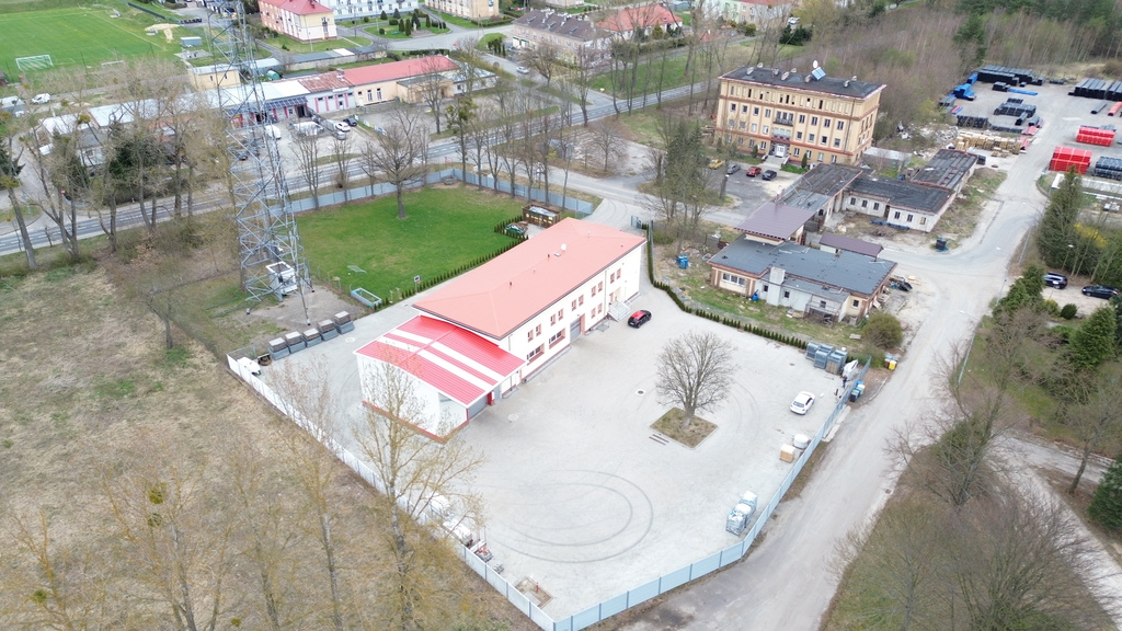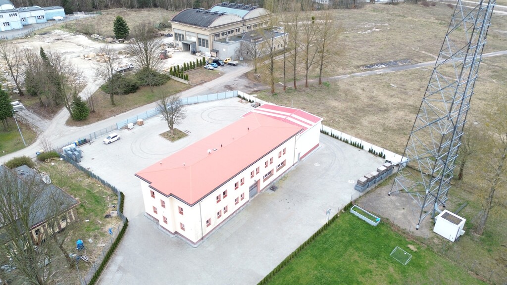 - Pomieszczenia biurowe, socjalne, WC, łazienka, sypialnia, hol o łącznej powierzchni 120 m2.