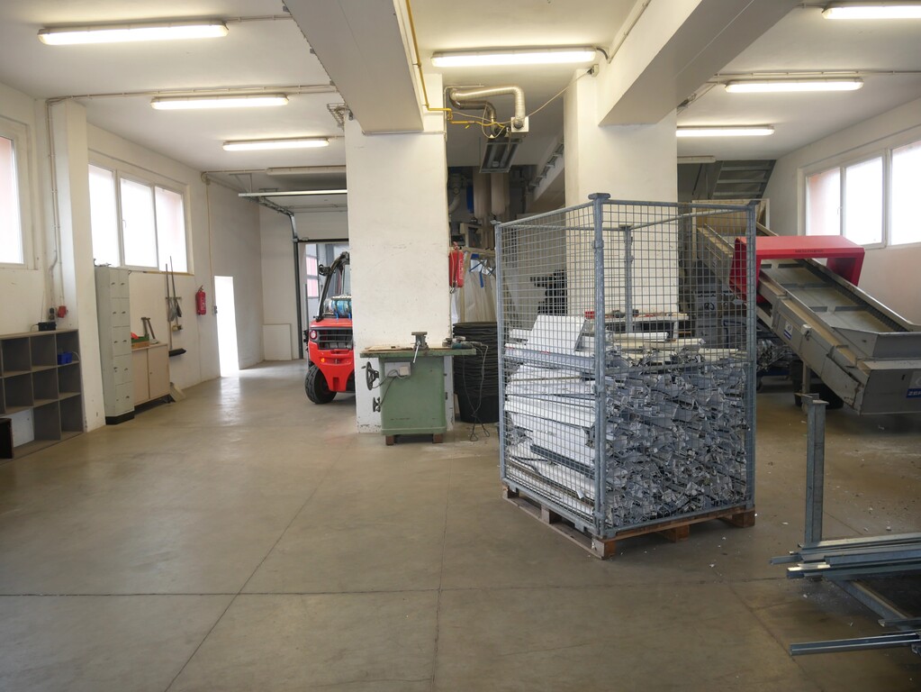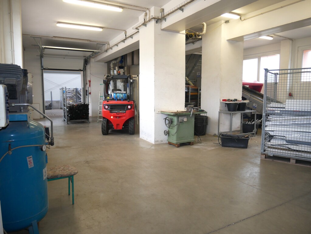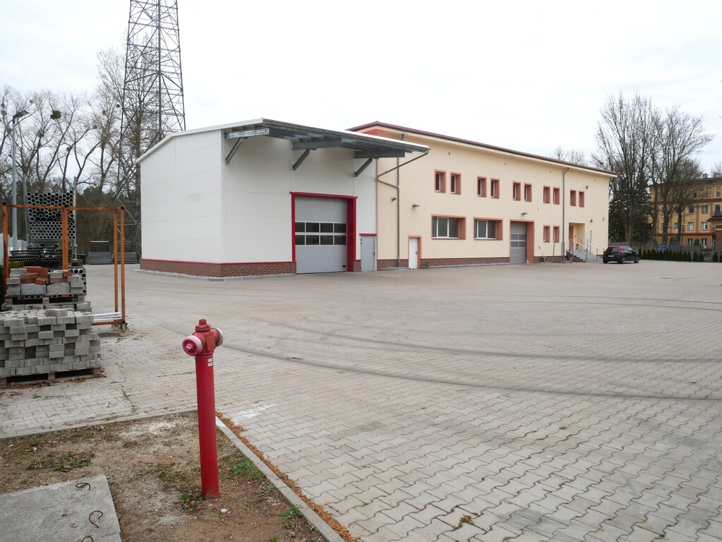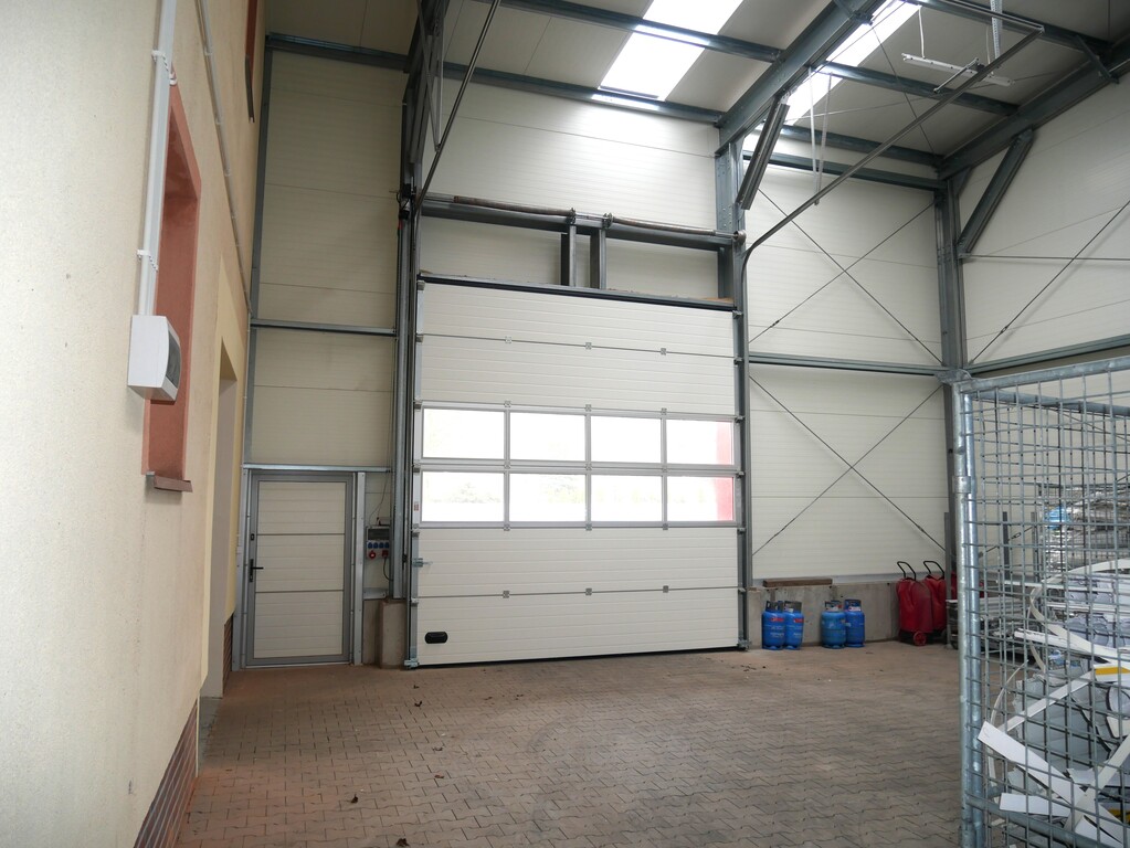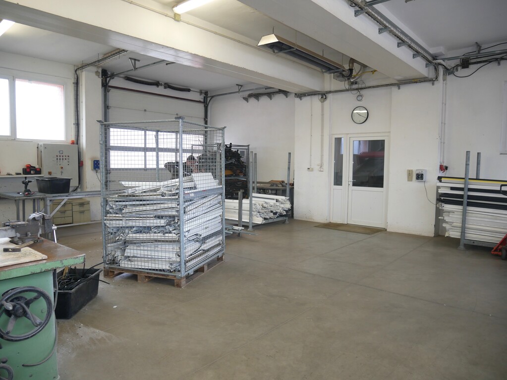 - Hala produkcyjna o powierzchni  120 m2 z bramą wjazdową wysokości 7,6 m,
