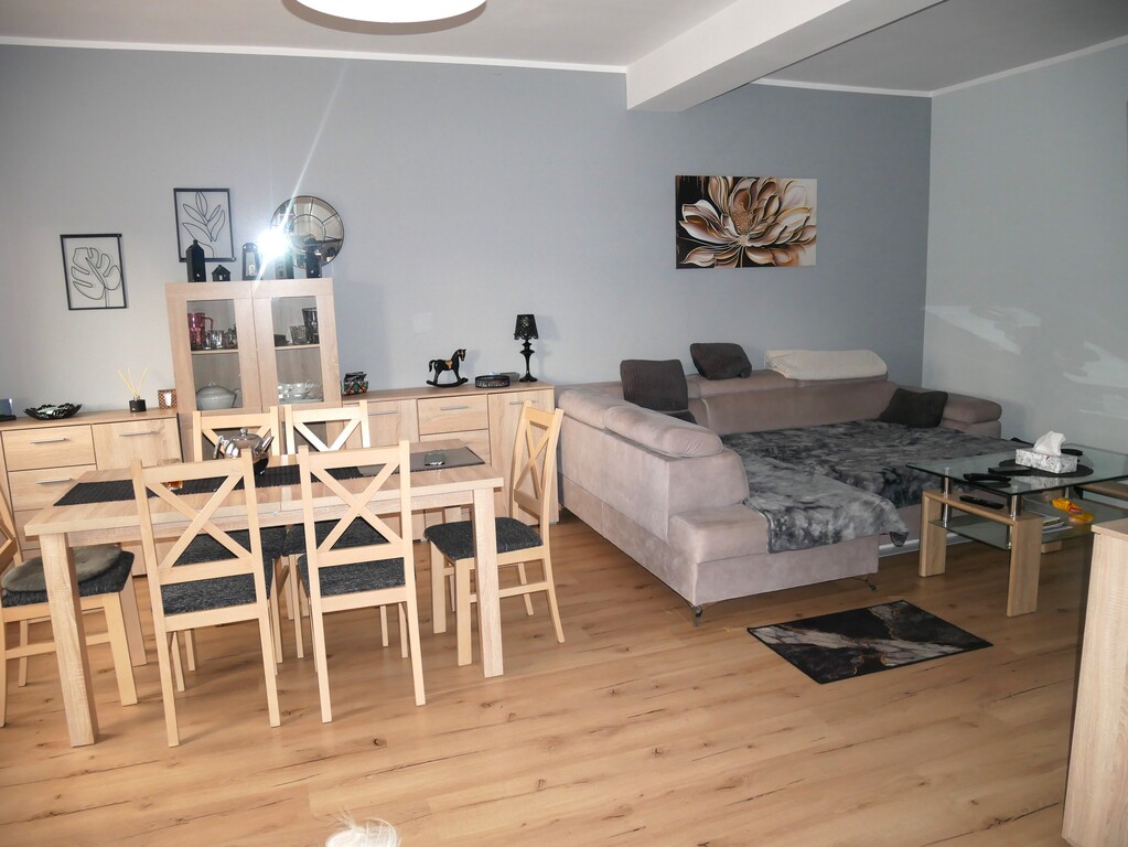 - Mieszkanie o łącznej powierzchni 120 m2 składające się z: salon z aneksem kuchennym, trzy pokoje, łazienka, hol.