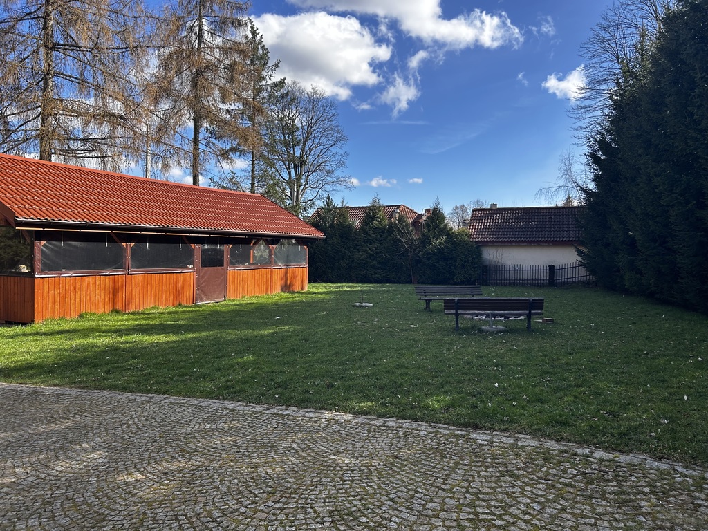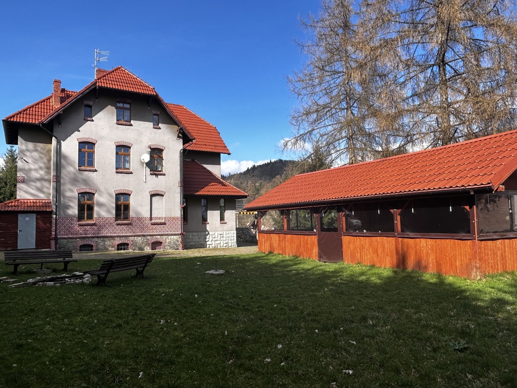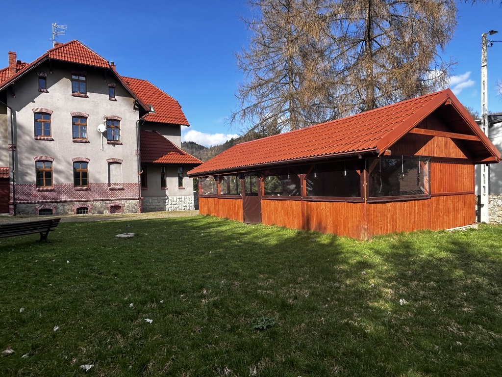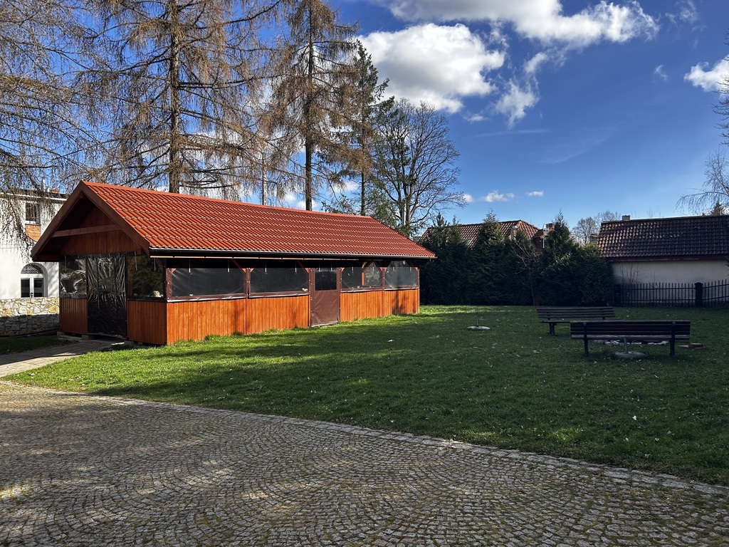 Obok budynku, wiata drewniana, sporych rozmiarów- miejsce stworzone do wypoczynku, grillowania, czy organizacji imprez na zewnątrz, parking dla gości.