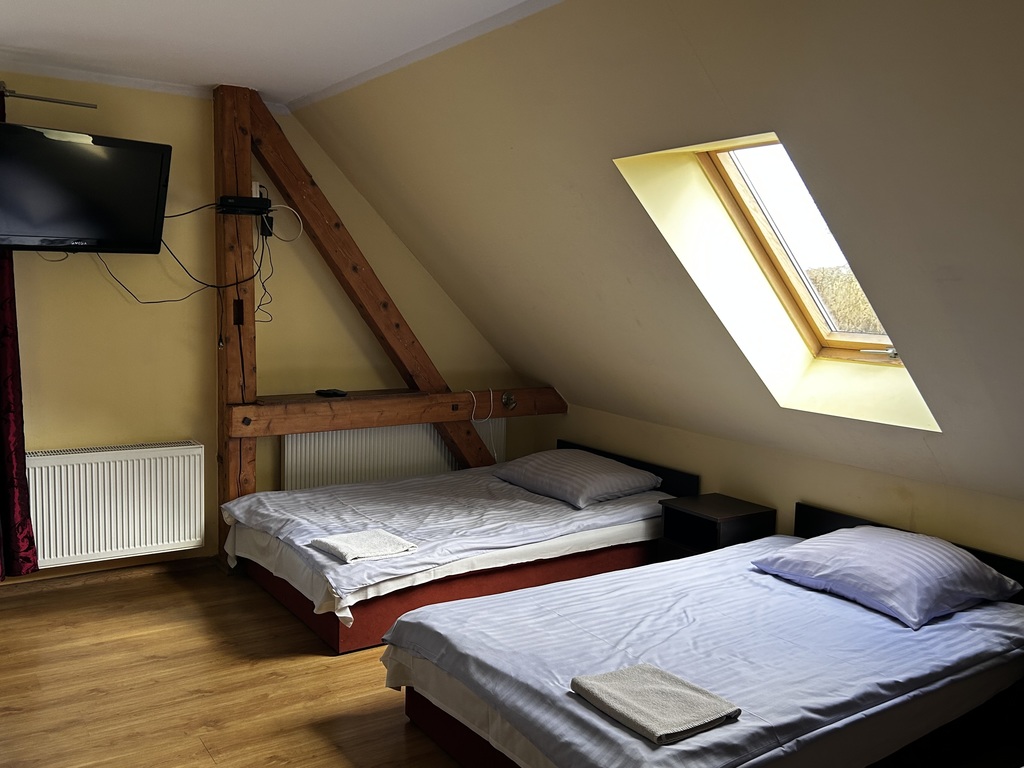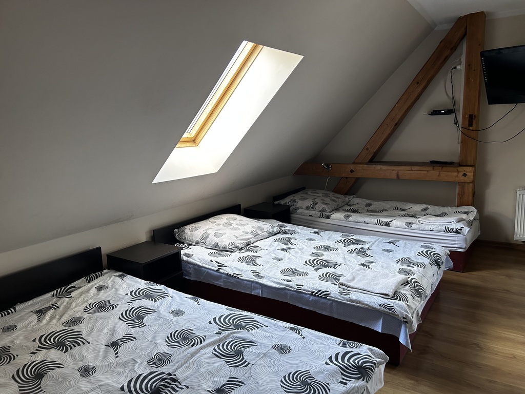 5 pokoi, w tym jeden dwupokojowy apartament ( pokoje z łazienkami )