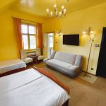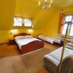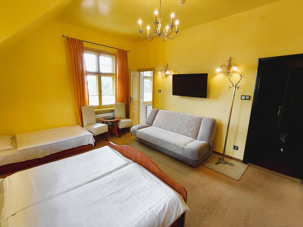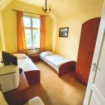 - czternaście pokoi jedno, dwu, trzy i czteroosobowych (w tym jeden apartament) rozlokowanych na pierwszym i drugim piętrze. Wszystkie pokoje z łazienkami. Dwa pokoje oraz apartament na pierwszym piętrze wyposażone są w balkony.