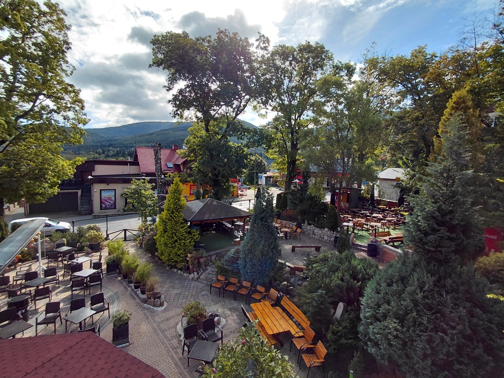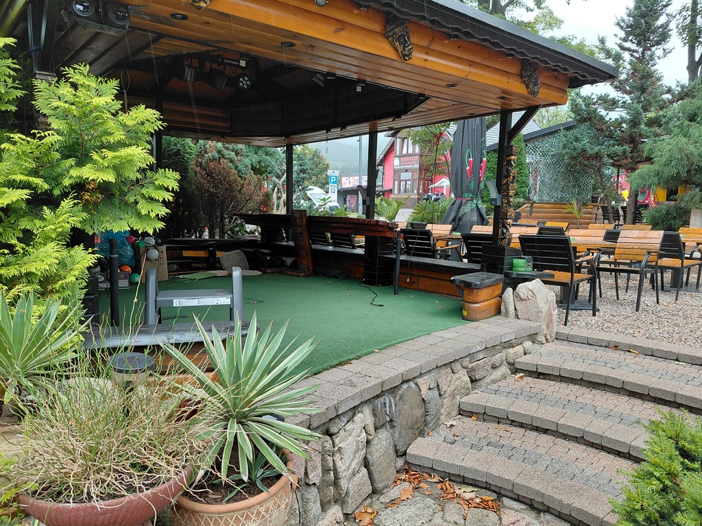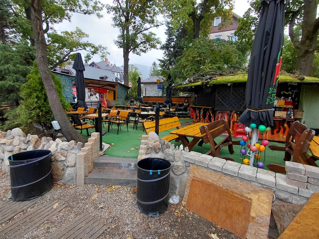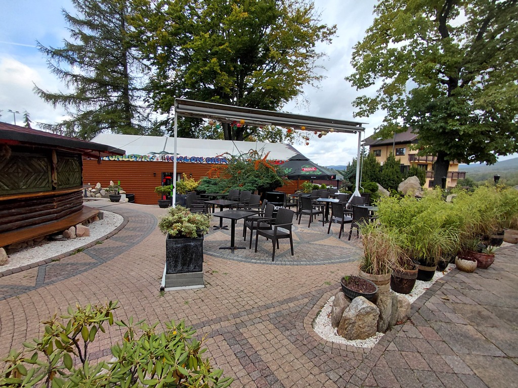 - Przed budynkiem pensjonatu znajduje się salon gier i zewnętrzny sezonowo czynny bar z miejscami na około 190 osób. W razie potrzeby może zmieścić więcej osób.