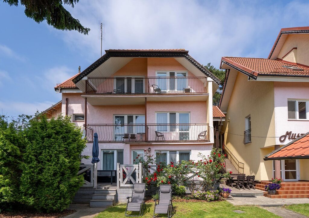 Pensjonat położony jest w Krynicy Morskiej przy głównej ulicy Gdańskiej, na 2 działkach o łącznej powierzchni 750 m2. Nieruchomość składa się z dwóch trzykondygnacyjnych budynków połączonych zewnętrznymi schodami
