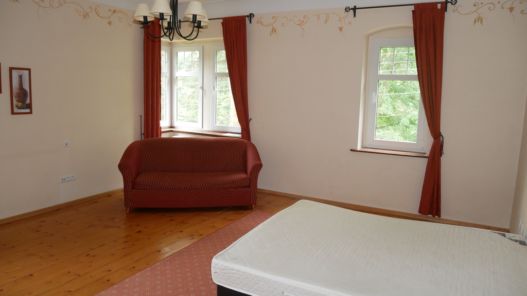 - Obecnie pokoje nie posiadają umeblowania widocznego na zdjęciach poza łóżkami z materacami.