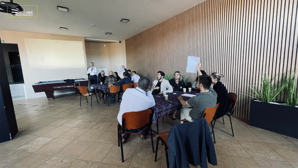 Następnie po krótkiej przerwie, odbyło się szkolenie Michała Birka - Dyrektora Oddziału Północ Nieruchomości Wołomin na temat wideo marketingu oraz innych sposobów na zdobycie klientów. Michał podzielił się swoimi spostrzeżeniami oraz doświadczeniem w zakresie marketingu w branży nieruchomości. Po intensywnych szkoleniach przyszedł czas na chwilę relaksu. Wspólny obiad w karczmie dostarczył nam wiele energii na dalszą część dnia :)