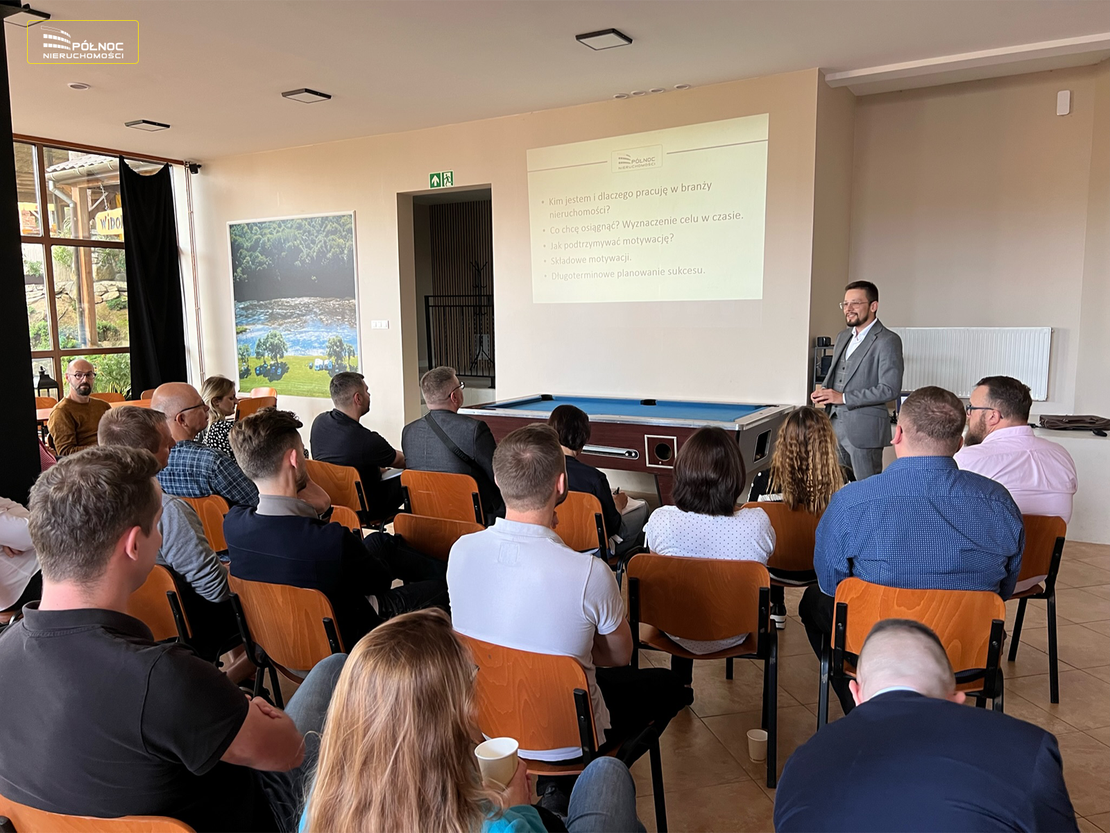 W piątek rano dotarliśmy na teren ośrodka i po zakwaterowaniu udaliśmy się na pierwsze szkolenie prowadzone przez Grzegorza Woźniaka - Dyrektora Oddziału Północ Nieruchomości Lublin na temat motywacji w pracy pośrednika. Grzegorz podzielił się swoją wiedzą na temat tego, jak podtrzymywać motywację, jakie są składowe motywacji oraz jak planować sukces na dłuższą metę.