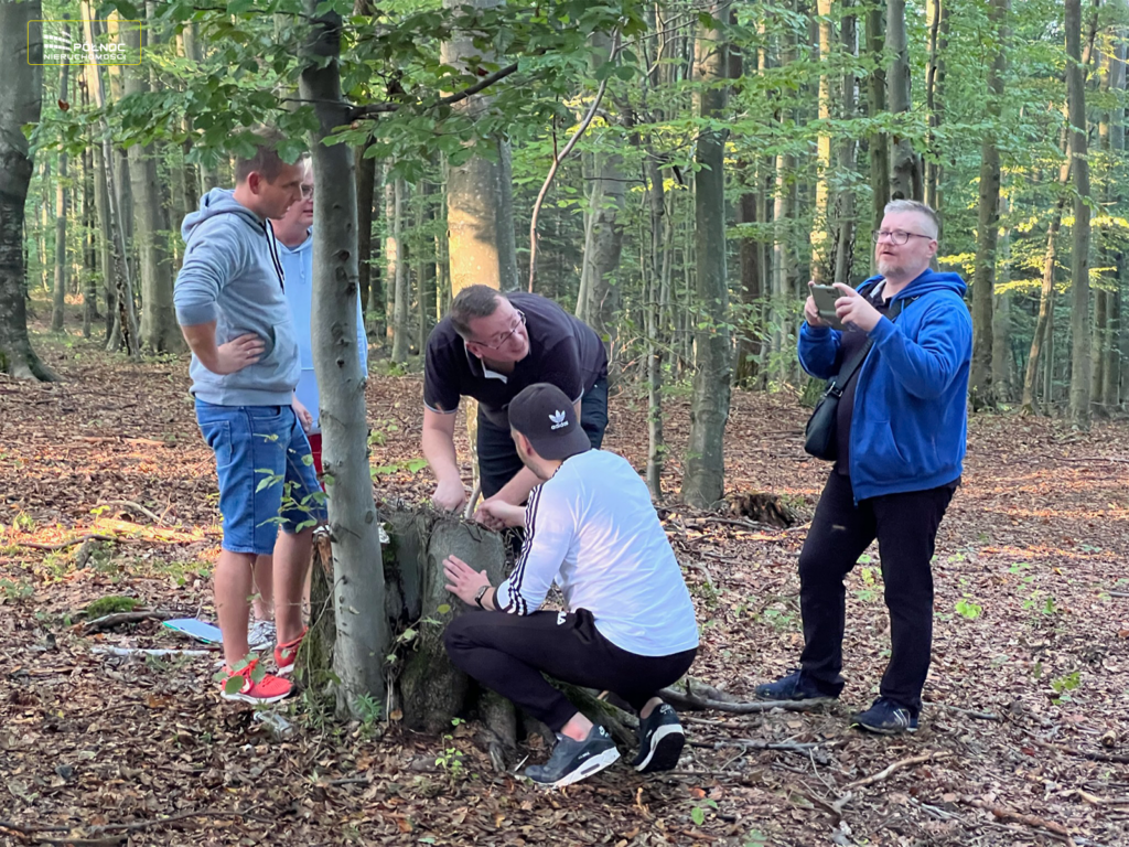 Po południu rozpoczęliśmy grę terenową w pięknych okolicach ośrodka. Podzieliliśmy się na grupy i przeszliśmy szkolenie z nawigacji kompasem. Następnie ruszyliśmy w teren, gdzie czekały na nas różne zadania związane
